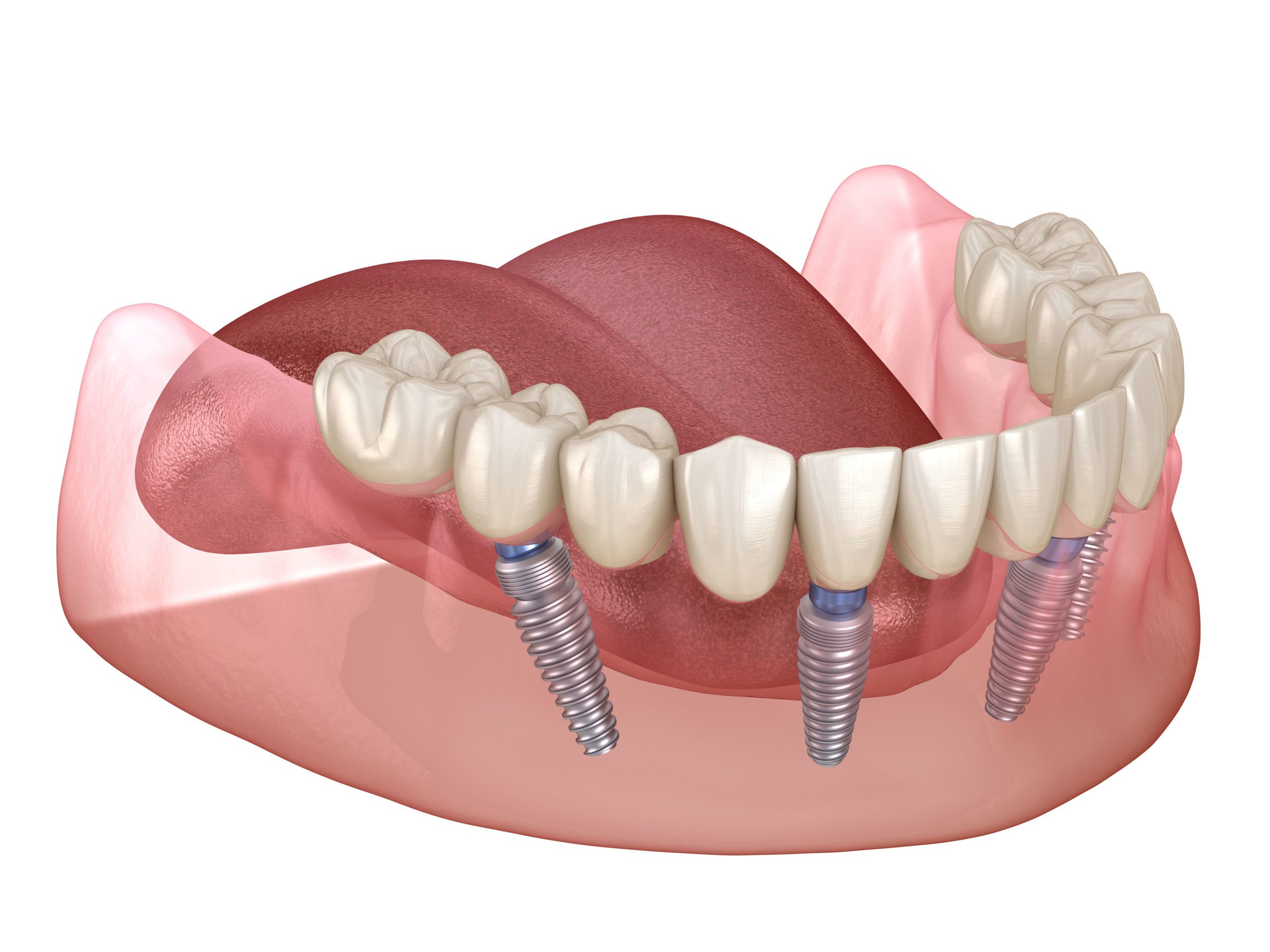 All-on-4 implants are strategically placed to maximize existing bone density, reducing the need for additional procedures such as bone grafting. This streamlined approach makes the surgery less complex and more accessible for a broader range of patients.
